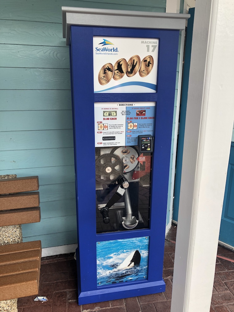 Previously this machine was found across the walkway and a little easier to spot. I was surprised to find it closer to the gift shop on this trip but probably makes it easier for the shop employees to help should someone have a problem with the machine.