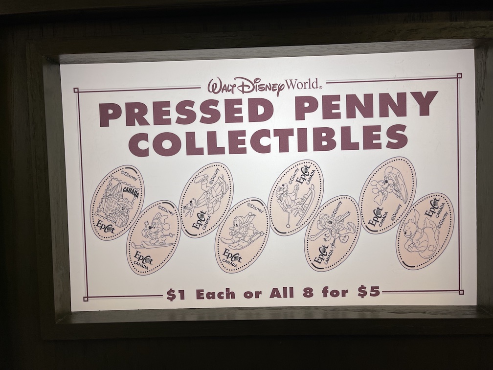 I was informed that this new machine was located back in the World Showcase inside the Canada Pavilion. There used to be a 3-design machine in the Northwest Mercantile so that’s where I started my search. I’ve mentioned in the past that I’m originally from Ottawa Canada and this pavilion is one of my favorites. I will admit this isn’t a great representation of the entire country but some of the architecture does remind me of home. I always wished they would have a ride here for guests to experience but instead we still have just the circle vision 360 movie. It was recently updated but I personally prefer the older version. One thing that this pavilion does have is one of the best restaurants not just in Epcot but possibly all of WDW property and this the signature steakhouse Les Cellier. It is quite expensive but for special occasions (is pressing pennies a special occasion?) it’s a great experience with wonderful food.