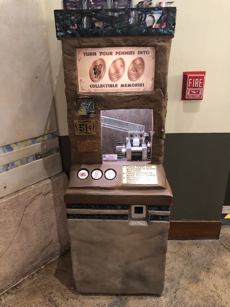 This all took place on quite a busy day of traveling around Walt Disney World property checking on pressed penny machines. Earlier in the morning I came across a new machine over at the Art of Animation resort and you can read all about that here. Then I headed home to write all about that new machine and was editing the video for our Youtube Channel when I received a message from one of my penny pals Thelma letting me know about a possible new machine inside Epcot.