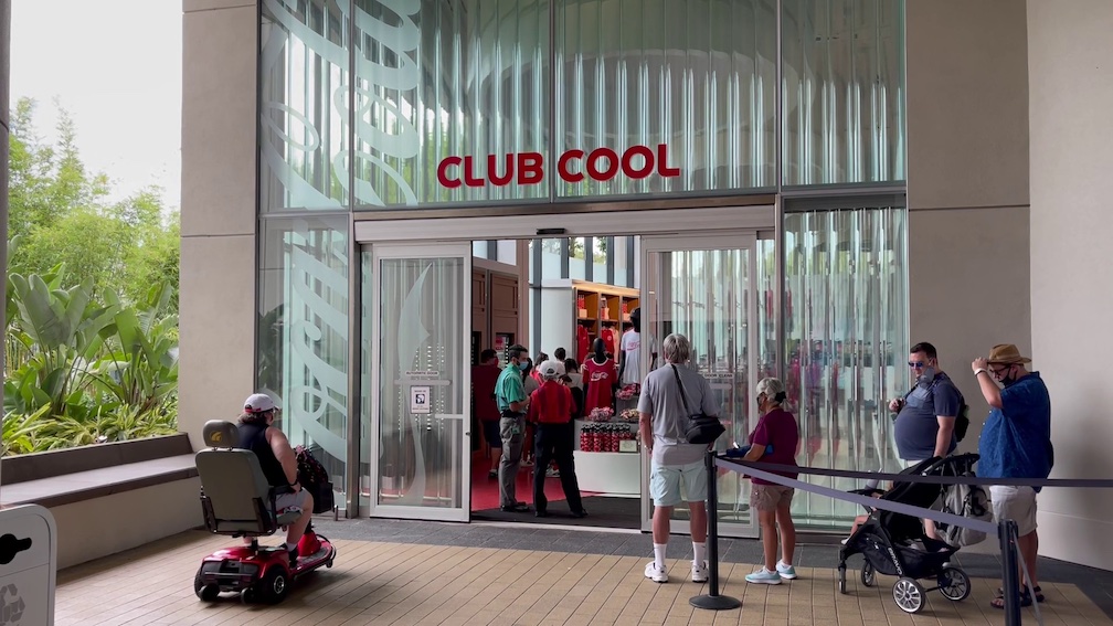 I’m sure many of you are familiar with club cool, but for those that may not know it’s a very interesting place. It’s sponsored by Coca-Cola and allows guests to cool off by sampling complimentary Coca-Cola soft drinks from around the world. Plus there is a ton of Coke merchandise inside, but in all seriousness it’s really about drinking those…interesting sodas.