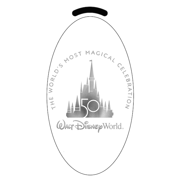 At a recent Cast Member special event known as EARidescent Evenings which took place in the Magic Kingdom as Cast Members were leaving they were gifted a special 50th Anniversary Medallion. The coin is sealed in a plastic capsule and attached to a card stating “WE are the MAGIC”. The front of the medallion has Mickey and Minnie in front of Cinderella Castle with fireworks in the sky. The reverse side of this coin is the same as all the others we have reviewed above with Mickey stating “The World’s Most Magical Celebration”.