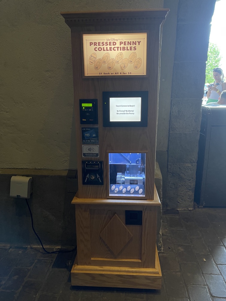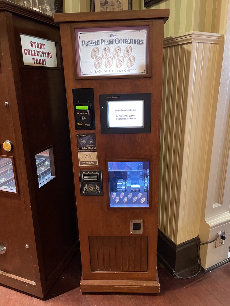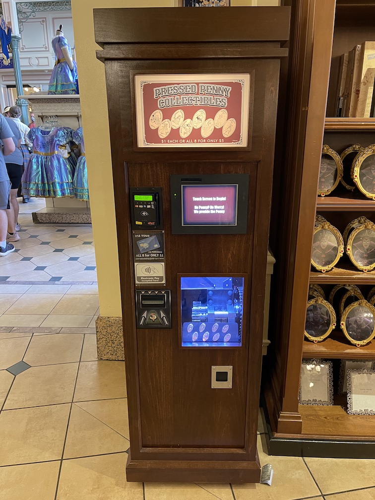 First up we visited the Magic Kingdom and thankfully didn’t have to trek too far into the parks. Once you scan your ticket or magic band at the gate take a look to the left side and you will see the Newsstand. Currently it’s closed, and hopefully will reopen in the near future as this was a great place to pick up a last minute drink or snack before leaving the park. Thankfully the pressed penny machine is located outside the store so it can still be accessed.