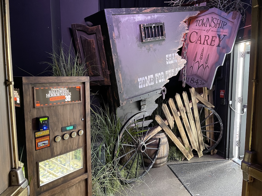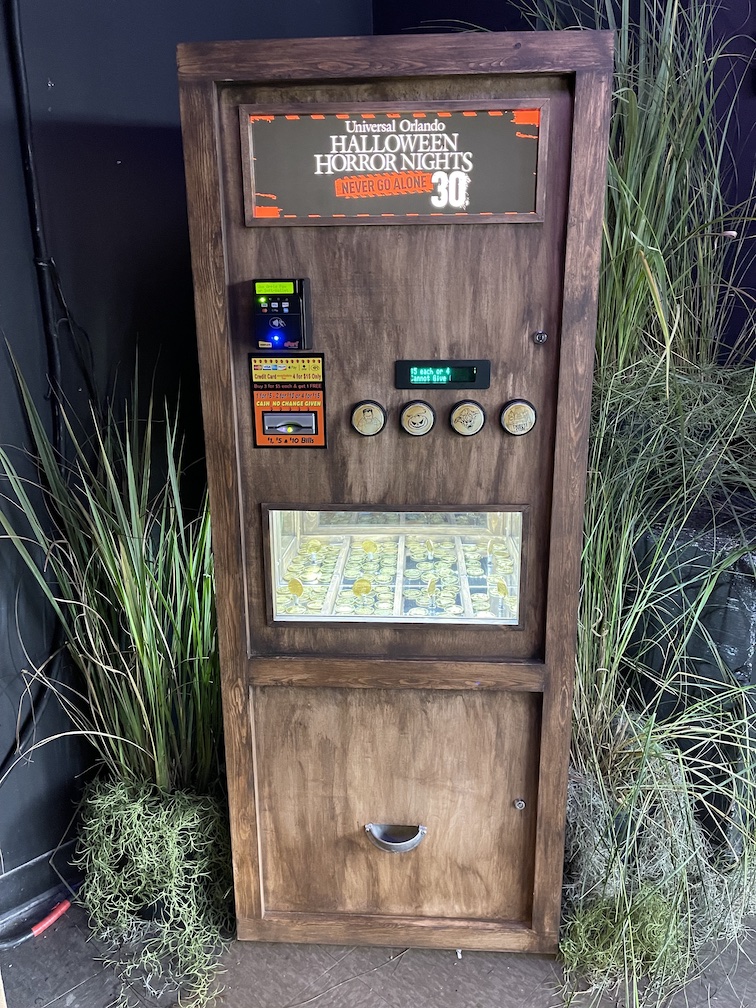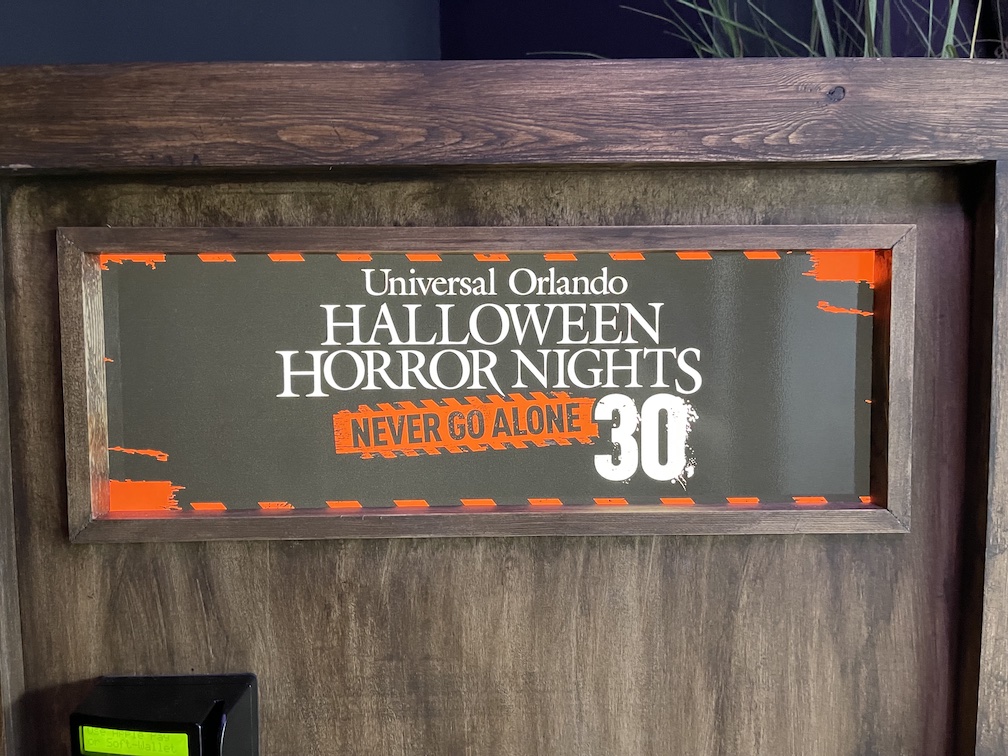 The marquee on the machine was so cool and definitely eye catching as I saw it from a distance. Having the HHN 30 logo on it and the creepy slogan, Never Go Alone.