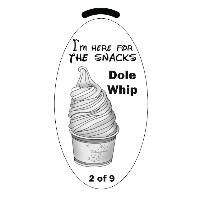 I’ve saved the best for last. As much as I love all the park attractions, shows, parades and characters one of my favorite things to do at the parks is indulge in all the amazing snacks. Here is a mini-set of 9 designs I put together showcasing all my favorite treats. These first three include the classic Churro, Dole Whip and of course a Mickey Premium Bar.