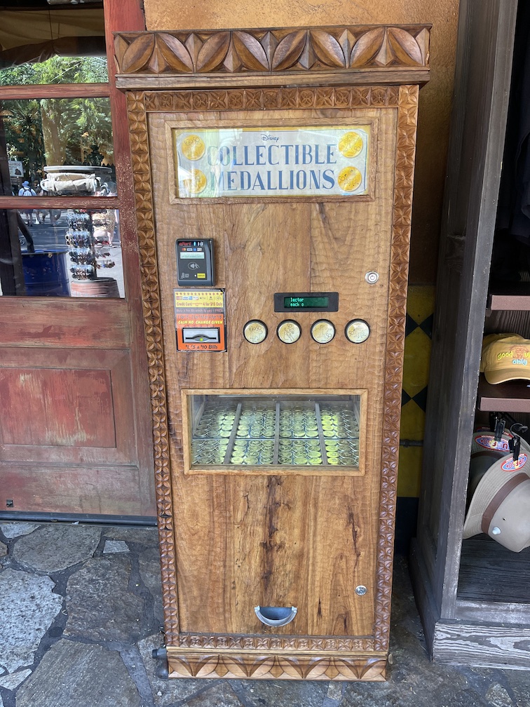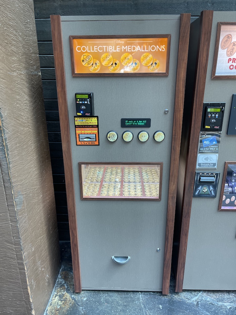 Before we start our pilgrimage to all the different resorts looking for medallions I was pretty sure we would find some a Disney Springs. More specifically in the Pin Trader store where there was currently a machine with some 2021 designs.