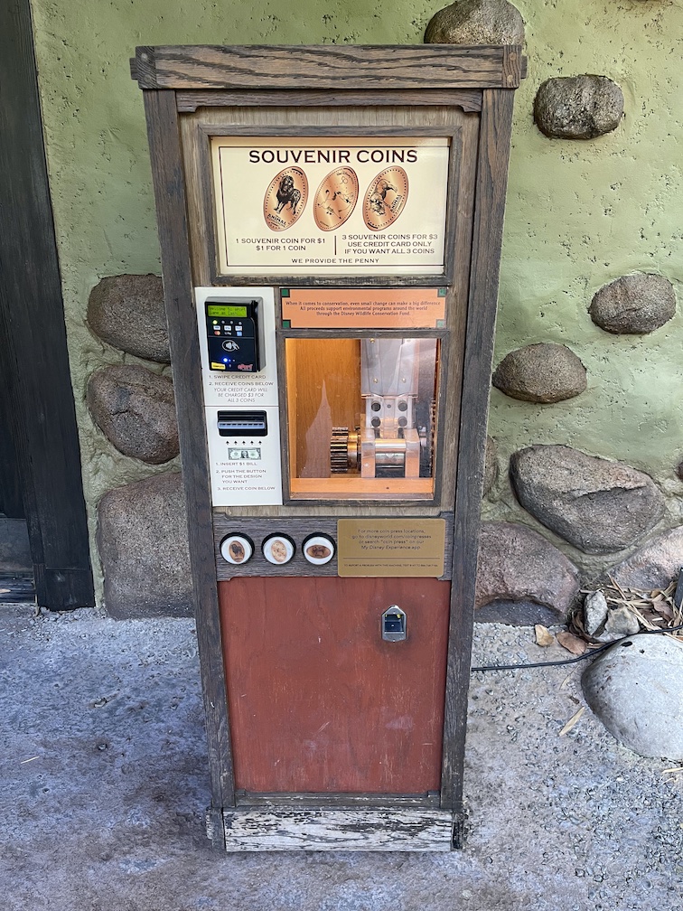 This machine is located in the Ziwani Traders store which is back near the Kilimanjaro Safari attraction entrance. The medallions available here include Simba, Bambi, Timon and Pumbaa.