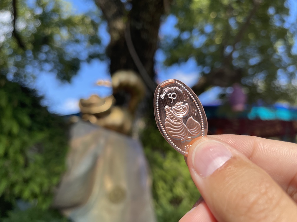 The second machine available in Disney Springs can be found in the gigantic World of Disney store. The machine is just inside the doors to the left of the Starbucks in front of the store. This is also currently where most of the 50th Celebration merchandise can be found. The medallions of Olaf, Jaq and Gus have returned after being missing for weeks, but we have now finally found the infamous Cheshire Cat.