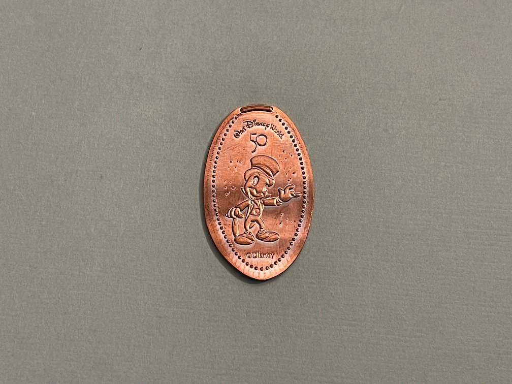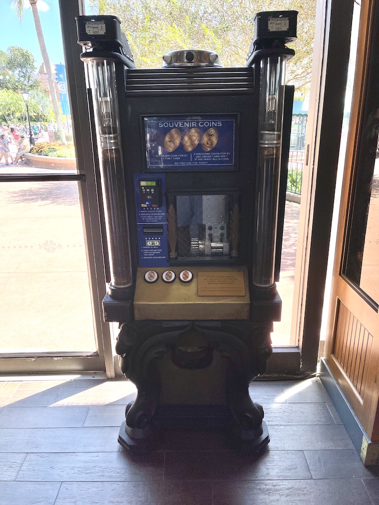 This machine has been in this location for quite a while. In the past we have seen medallions for some of the different Festivals, but then it went stale for quite awhile with some Winter character designs that stuck around for much longer than we anticipated. I was happy to see these have finally been updated with some nice new 50th Anniversary designs of Figment, Miguel from Coco, the Genie from Aladdin and Jimmy Cricket.
