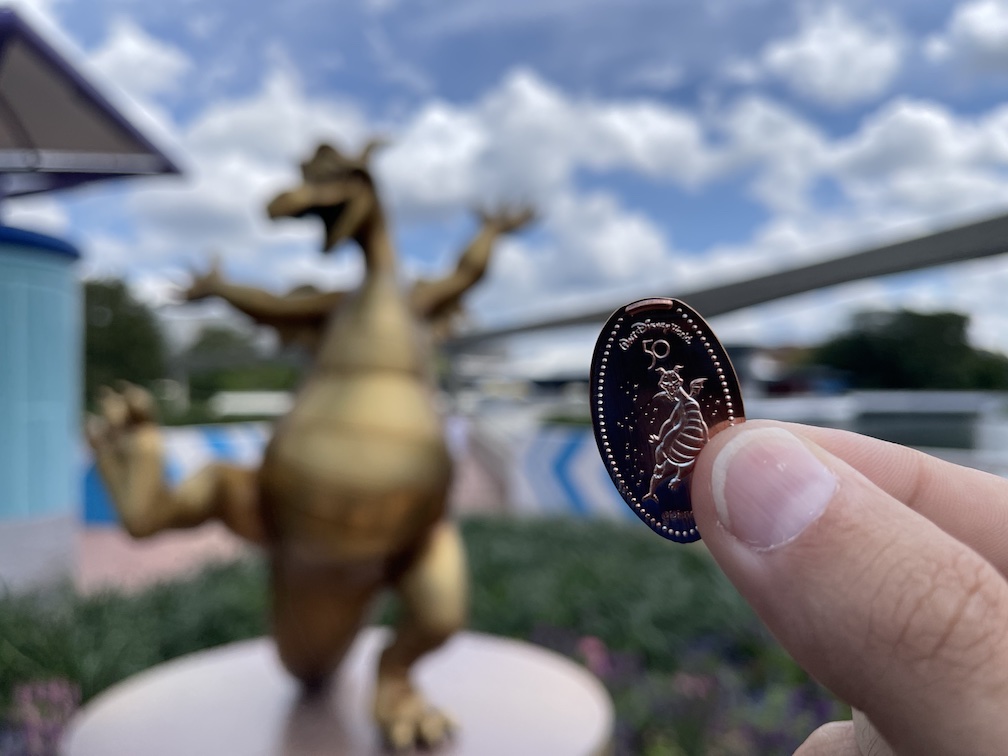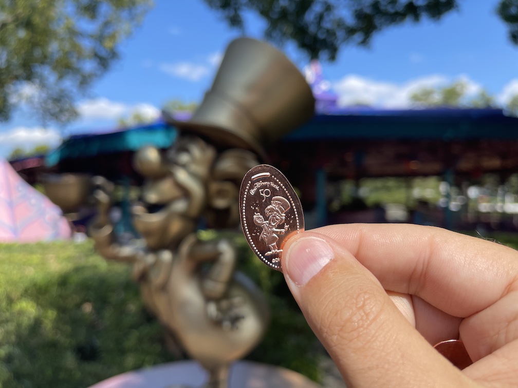 We all knew deep down in our hearts that Disney would release some special pressed penny designs to celebrate the 50th Anniversary, but with nothing official I was getting a bit worried. Thankfully Disney didn’t let us know and even though the 50th Celebration doesn’t start for a few more days, they have started releasing the new designs throughout the parks and this will be our official post that you can follow along as I find each one. I will continue to add to this post so everything is all in one place for you to use as your guide. Also quick plug for our Penny Maps, I’ve created a special one just for these 50th Anniversary Designs and you can find it here. So put on your Mickey’s ears and let’s head on over to the parks.