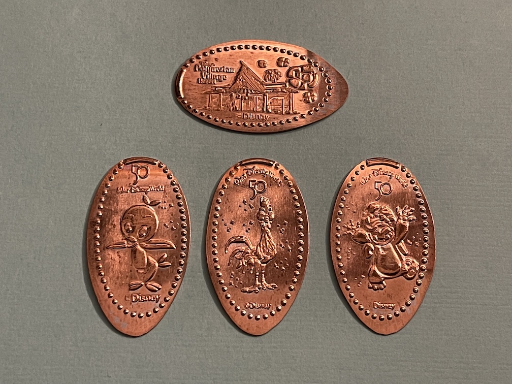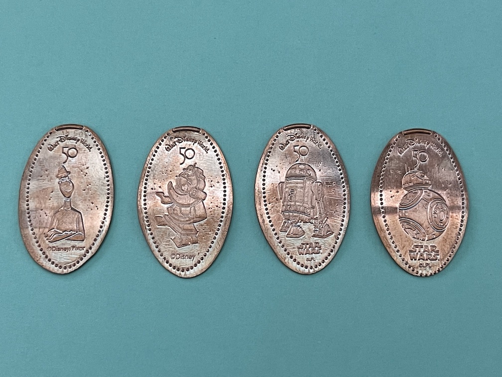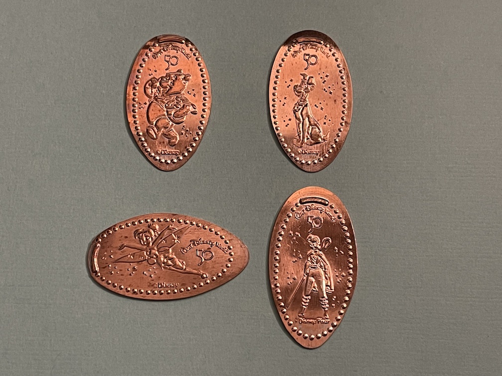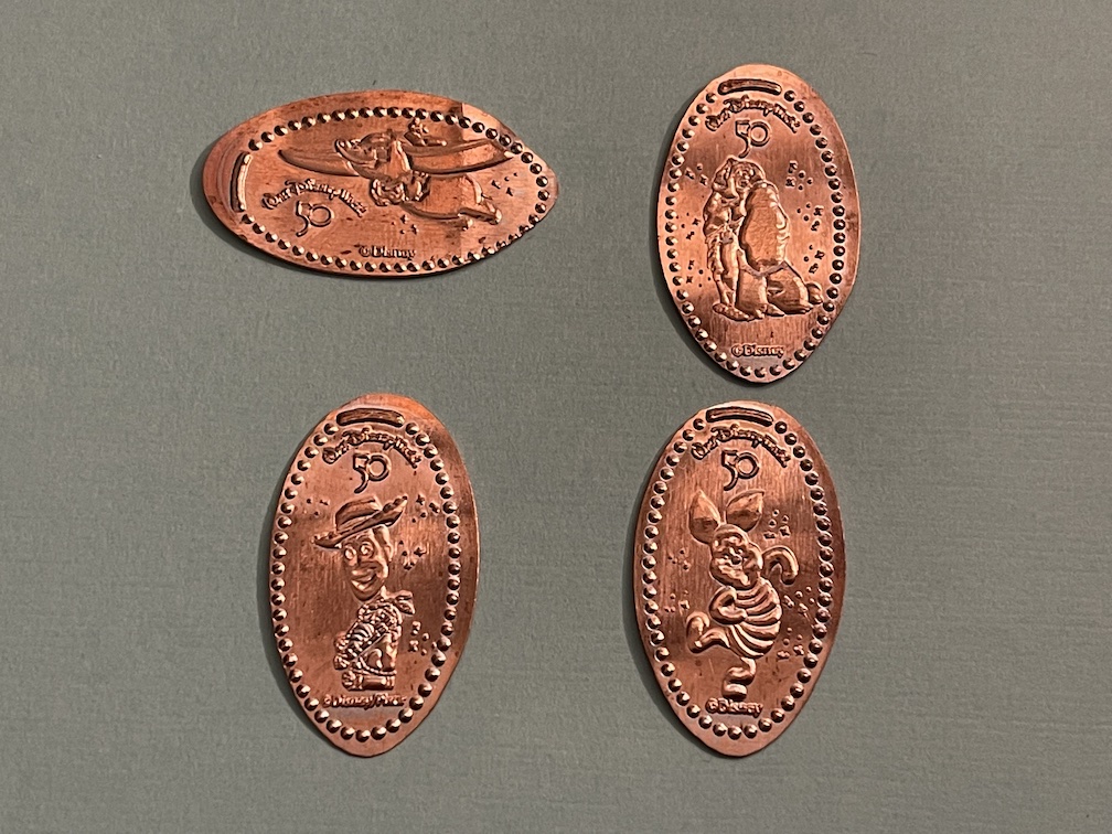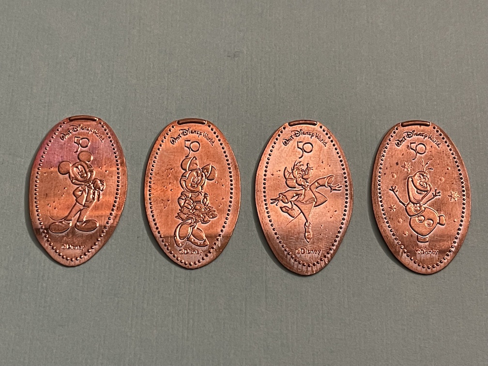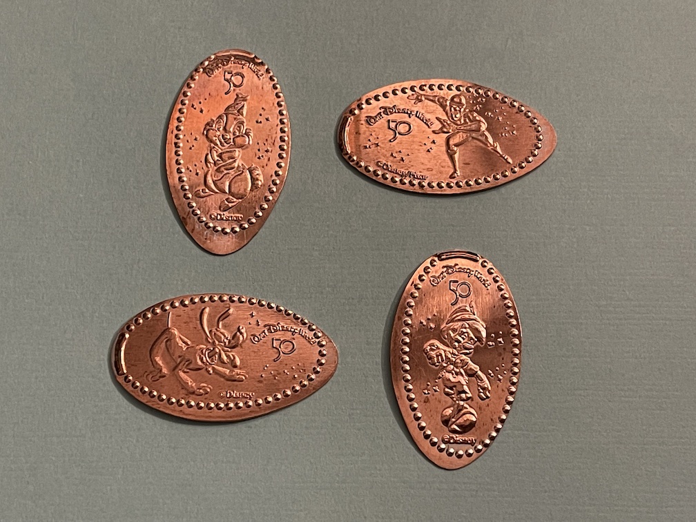 BREAKING NEWS: I have received confirmation from some of our friendly collectors that Disney has released 9 new pressed penny designs celebrating the 50th Anniversary. Here is a link to a separate post about the 50th Anniversary Series 2 pennies.
