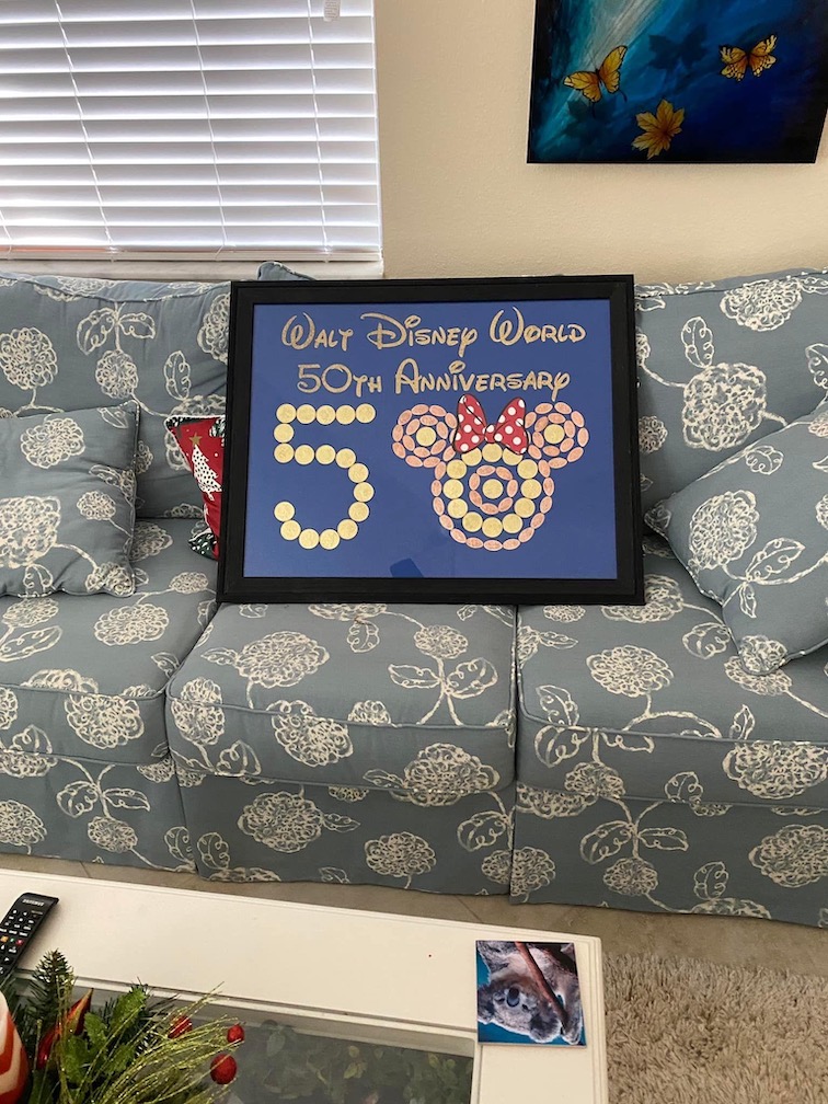 Here is another beautiful display with all 53 collectible medallions, the special 50th anniversary park maps all inside a wonderful frame. This is so creative and another amazing idea from fellow collector Angie W.