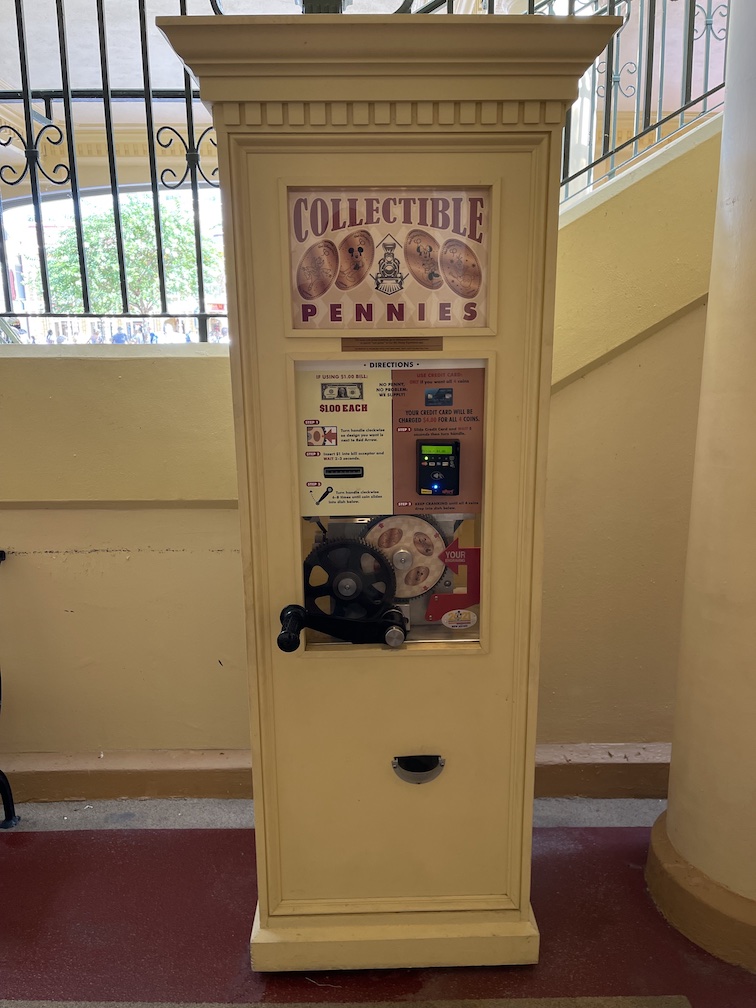 **Updated 10/14/2021** The above machine was initially located at the Island Mercantile store but has been moved to make way for a new penny machine. This machine is now available right next to the 50th Simba machine at the Discovery Trading Co. You may notice that this machine used to have the 2021 Pluto design but that is now retired and replaced with this awesome new 50th design of Dante from the movie Coco.