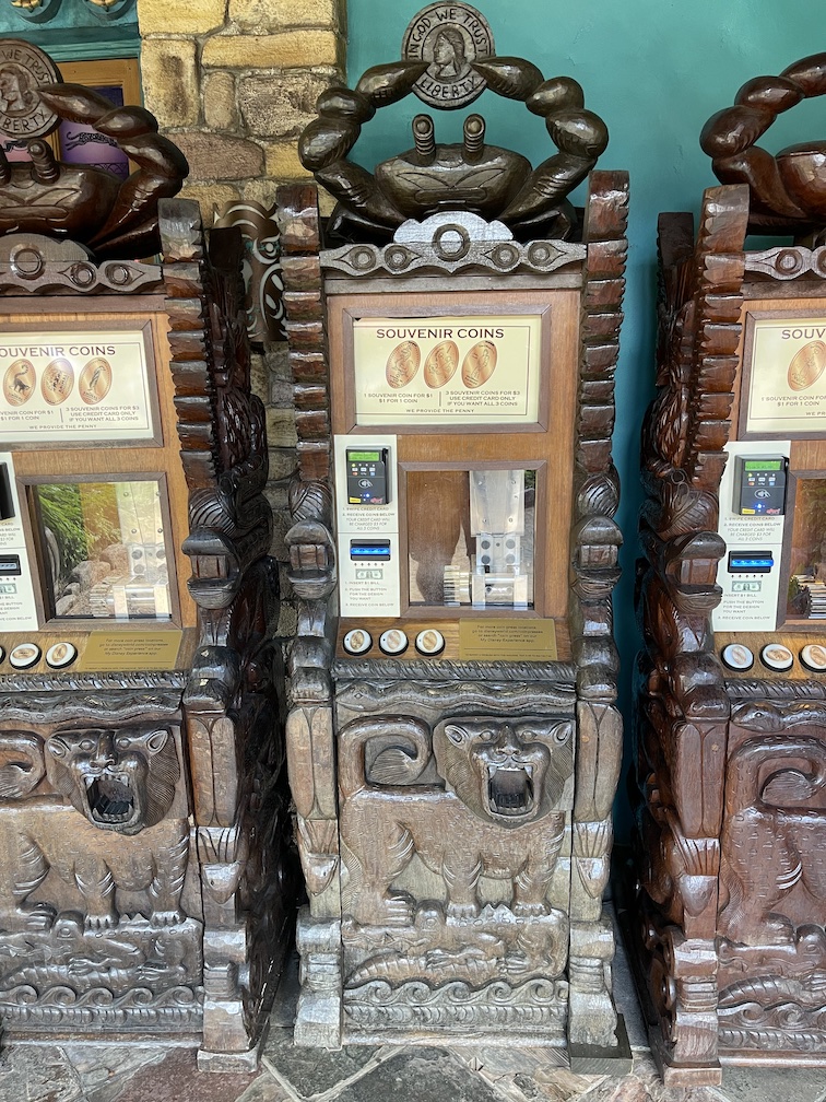 The cabinet of the machine has a nice clean natural wood look to it. This reminds me a bit of the fancy coo-coo clocks you can get inside the nearby Der Teddybar shop, but not as intricately detailed.