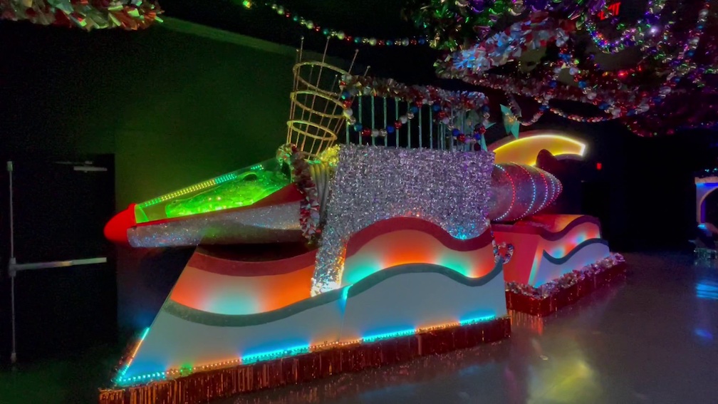 As with the other Tribute Stores we have experience in the past there are multiple rooms each telling a different part of a larger story. Inside this Float Factory each room took us through the process of designing and creating a parade float. Above was the second room we encountered and showed how they start carving in foam the details for the float.
