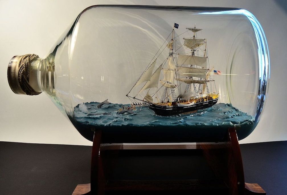 Real simple this is a bottle that contains an object that does not appear to fit through the bottles mouth. There are many different objects placed inside but a common one you may recognize is a ship in a bottle.