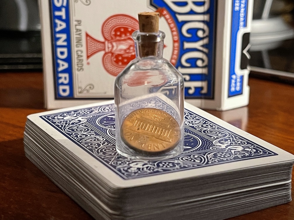 Some other objects that have appeared inside an impossible bottle include matchboxes, Rubik’s cubes, scissors, padlocks and one of my favorites decks of playing cards. It really seems like anything can be placed in one of these bottles and that includes our lovable penny.