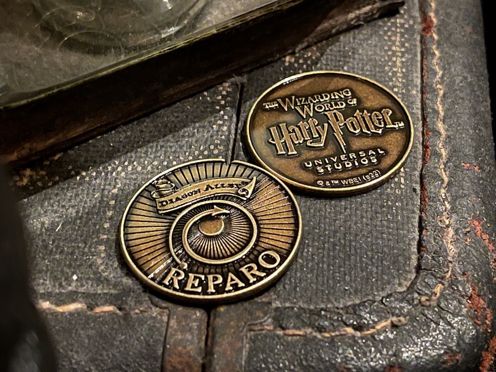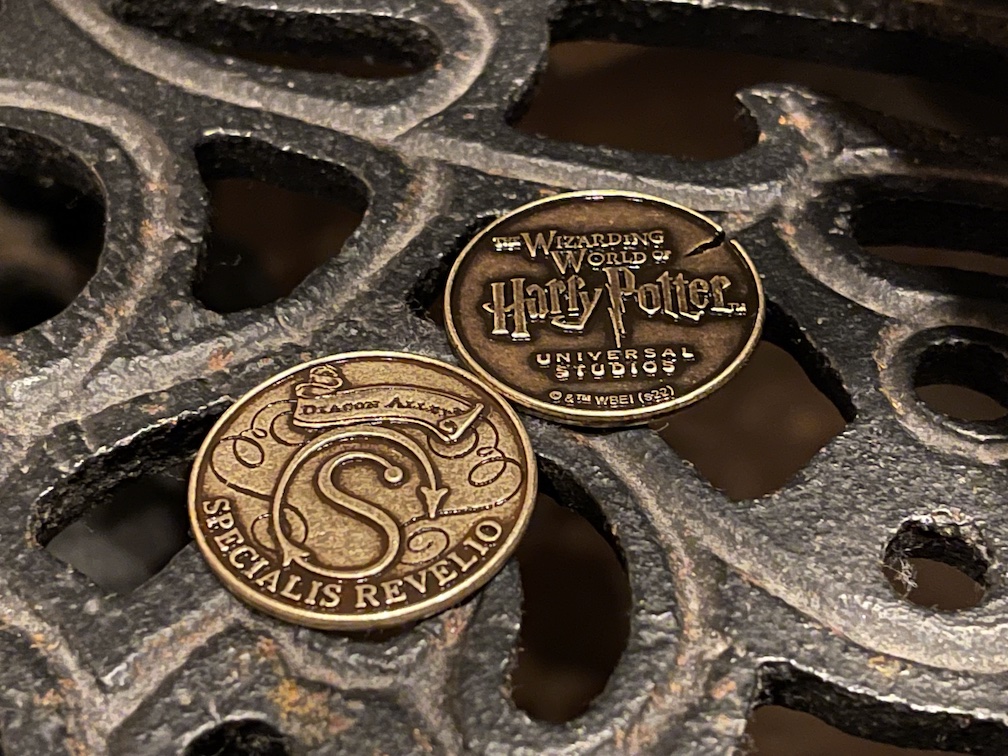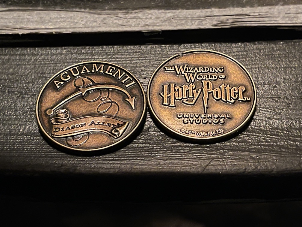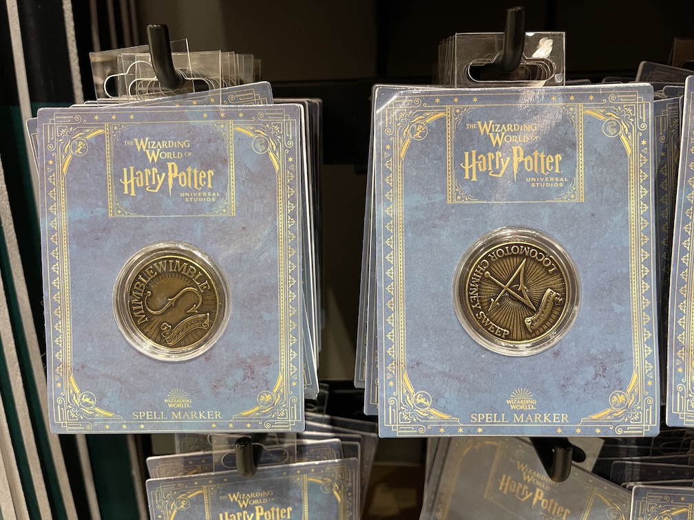 It would have been fun if these coins needed to be earned by showing you could cast the specific spells, but obviously these are just another souvenir. Each coin (at the time of this post) cost $8. For Diagon Alley there are a total of 8 coins to collect, and for Hogsmeade there are 9 total coins.