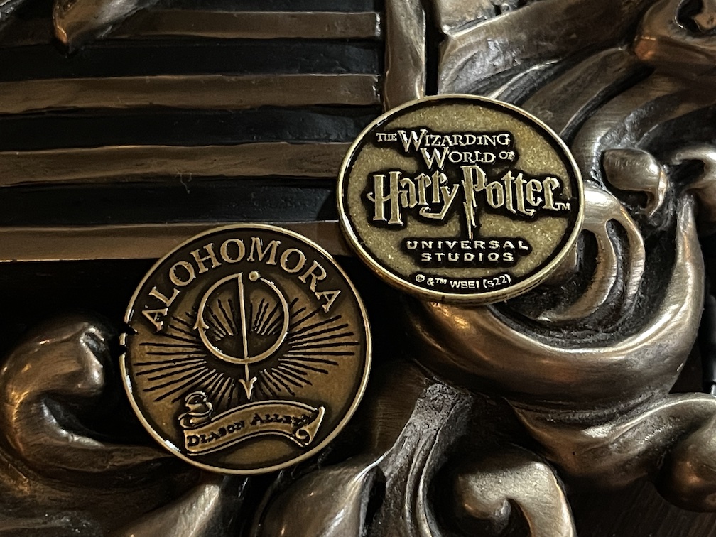 Unlike the elongated coin machines that are spread out all over the parks, these coins can all be found inside the main Universal Studios gift shop. Just note that this store will only have the Diagon Alley coins available, if you want the Hogsmeade coins you’ll have to head over to Islands of Adventure and you can see those in an upcoming post.
