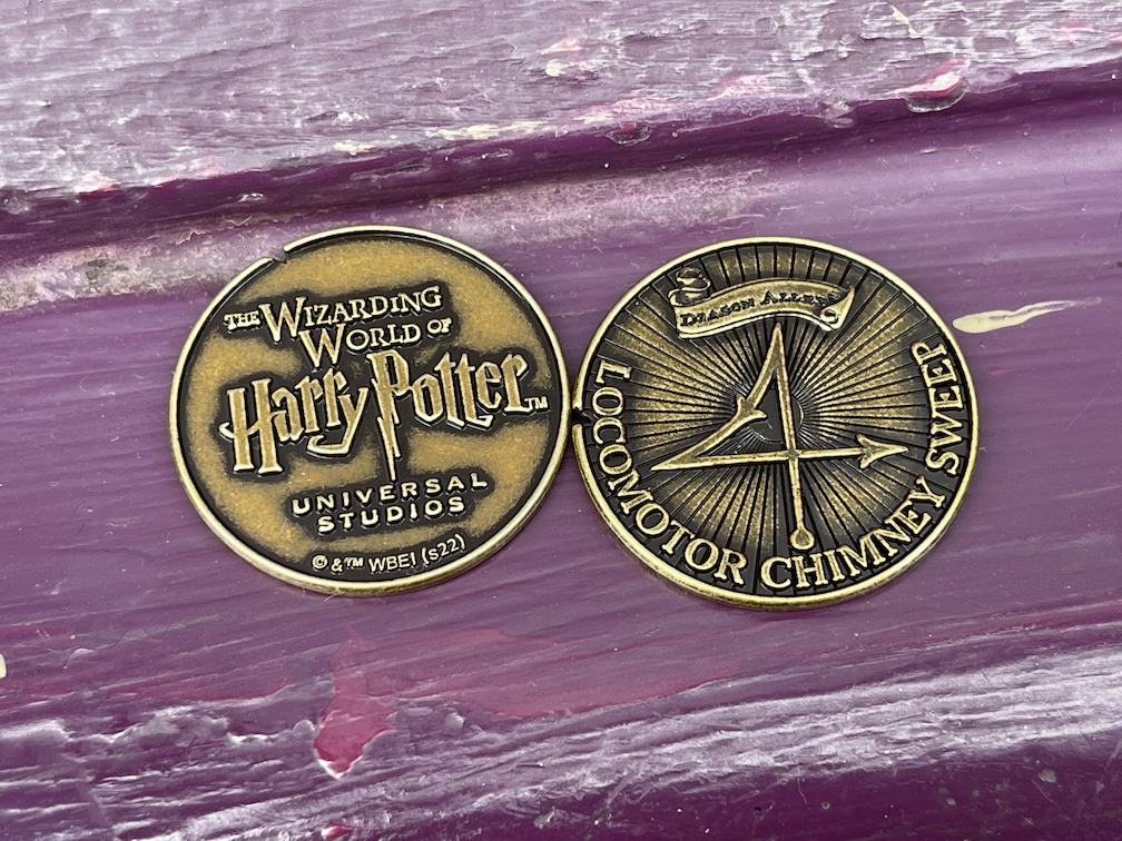 The coins are all available inside the Island Supply Gift Shop at the front of Islands of Adventure. I did not see these available inside any of the Hogsmeade shops for some reason. It does make finding them a bit easier, but every so often at least for me, it would be fun to have to visit more than one location to track them all down. Guess I’m just a glutton for making things more difficult on myself.
