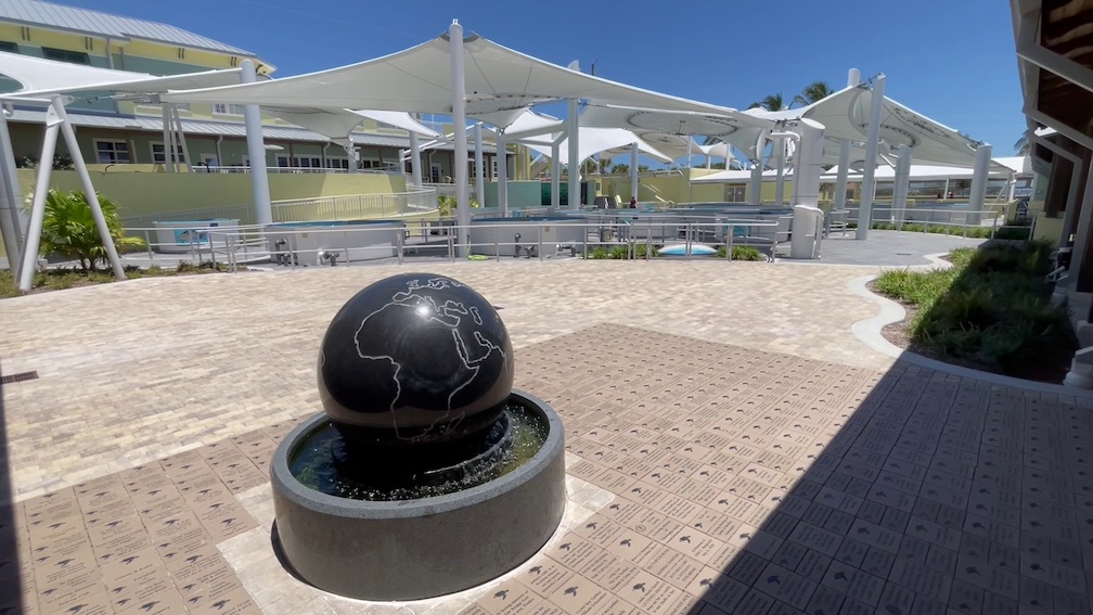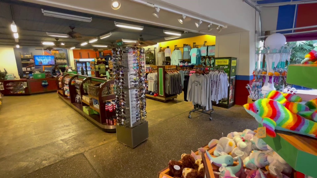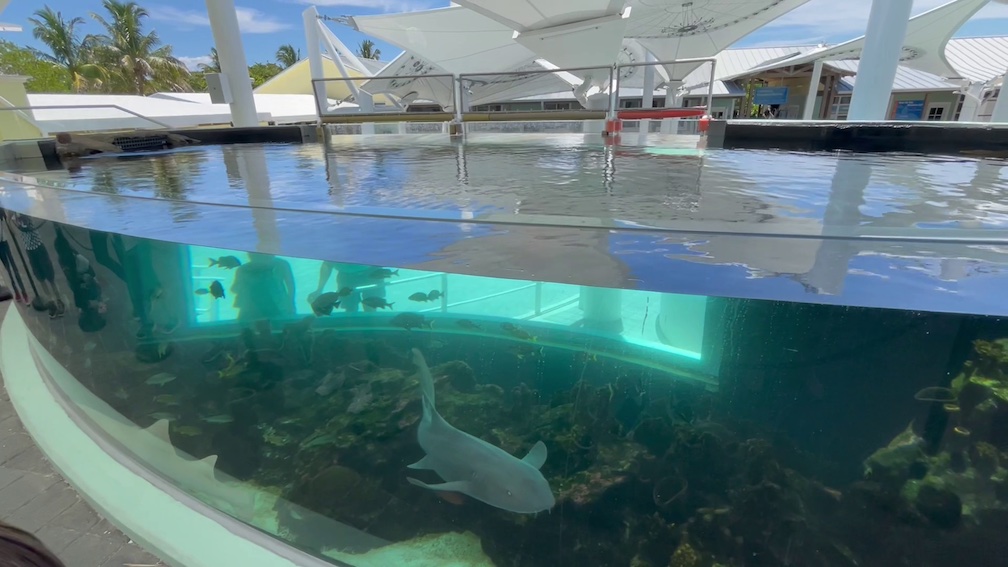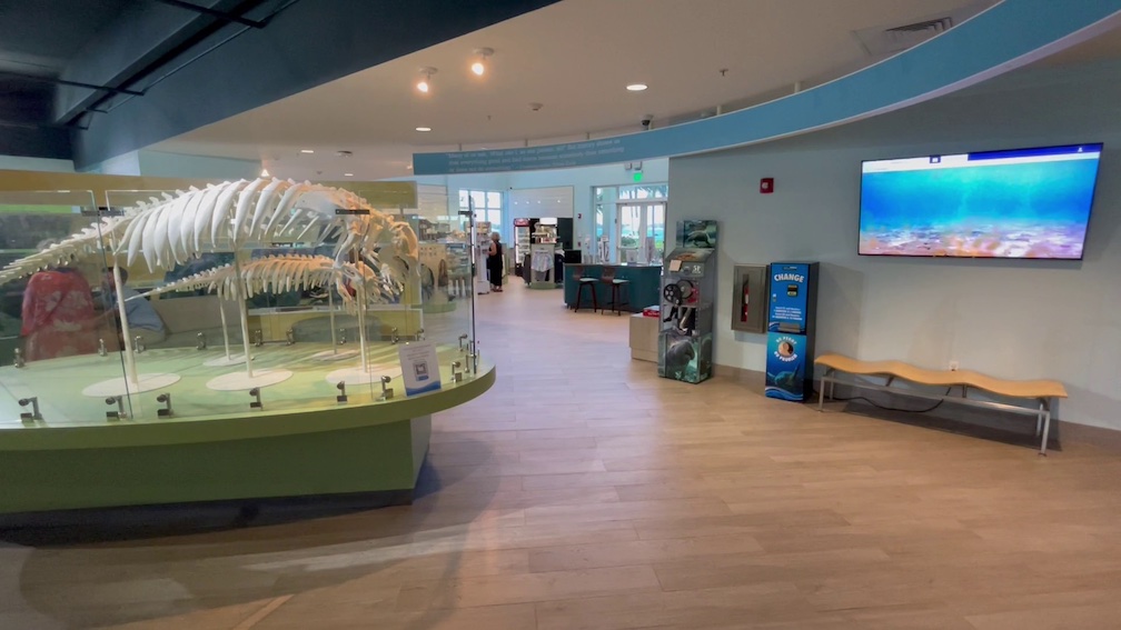 Inside the main building is a large reception desk with volunteers there to explain their mission at the marinelife center. There is no admission to visit, but they do accept donations which I would highly recommend. There is also a pretty large gift shop in this building that my kids really enjoyed checking out and we were persuaded that a few new stuffed animals needed to join our family trip. Out behind this building is the main courtyard area that has quite a few large tanks scattered around but are nicely shaded by large overhead canopies.