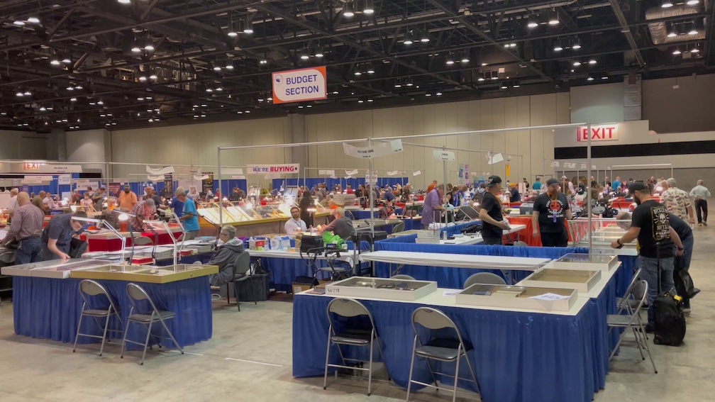 Next we headed through the coin show archway and down the escalator to the bourse floor where security will make sure you have that name tag on.
