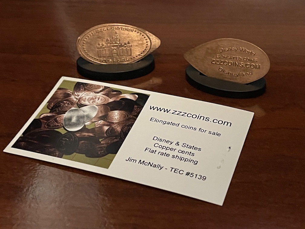 A version of this coin was commissioned by our friend and fellow collector Jim McNally for his website, and it has an exclusive backstamp advertising Jim’s online elongated coin shop that I have linked here zzzcoins.com. I have used Jim’s website numerous times in the past and it’s a fantastic place to fill in some gaps of your Walt Disney World collection, as well as sets from all over the country. Currently you can receive a free copy of this design on a pressed copper us cent with any order placed through his website. Additional copies of the penny, as well as a few full denomination sets that include a penny, nickel, dime and quarter are available for purchase but in very limited quantity.