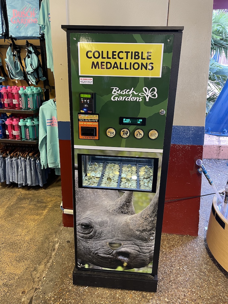 It wasn’t too long ago that SeaWorld Orlando released their first collectible medallion machine, and now here we are seeing the same thing happen at Busch Gardens in Tampa. I have heard that there were some previous versions of collectible coins available at Busch Gardens but since I’ve been visiting the last few years the only versions I’ve found were pressed pennies. Here we are however with the first new machine and maybe more to come.