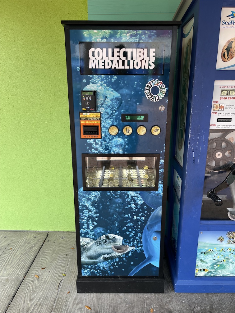 Here you will find a pressed penny machine which is not new, but just relocated. This machine used to be under the Stingray Lagoon canopy. Today however we are focusing on the new medallion machine.