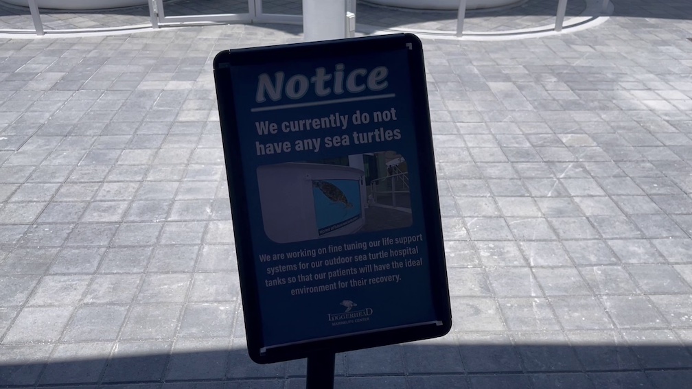 Unfortunately or maybe fortunately depending on how you look at it. There were currently no sea turtles in their care. Unfortunately since we were looking forward to seeing some of them up close, but I guess fortunate to the turtles that they have been rehabbed and released back into the ocean. The volunteer at the main registration desk did let us know this before we entered and they did have quite a few signs like the one above.