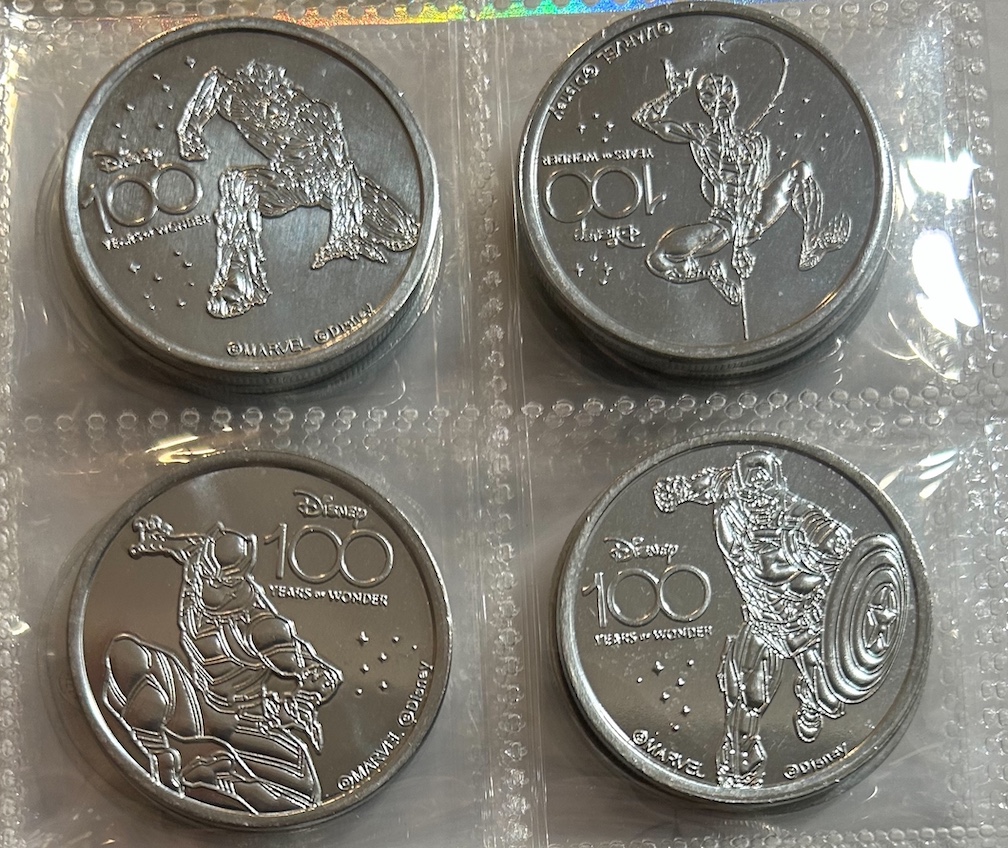 Inside the Guardians of the Galaxy: Mission Breakout gift shop called The Collector’s Warehouse is the Marvel themed set of souvenir medallions. There are coins with Groot, Spiderman, Black Panther and Captain America available in this location.