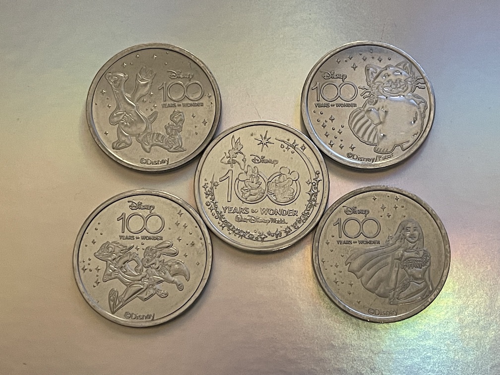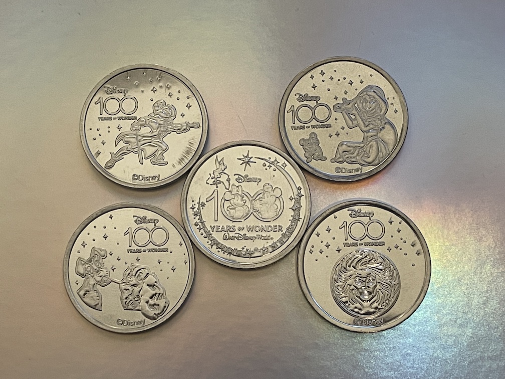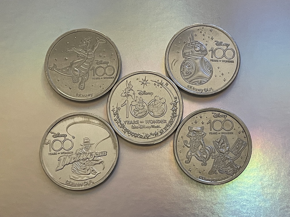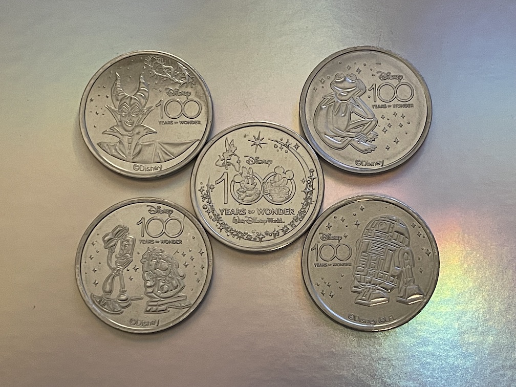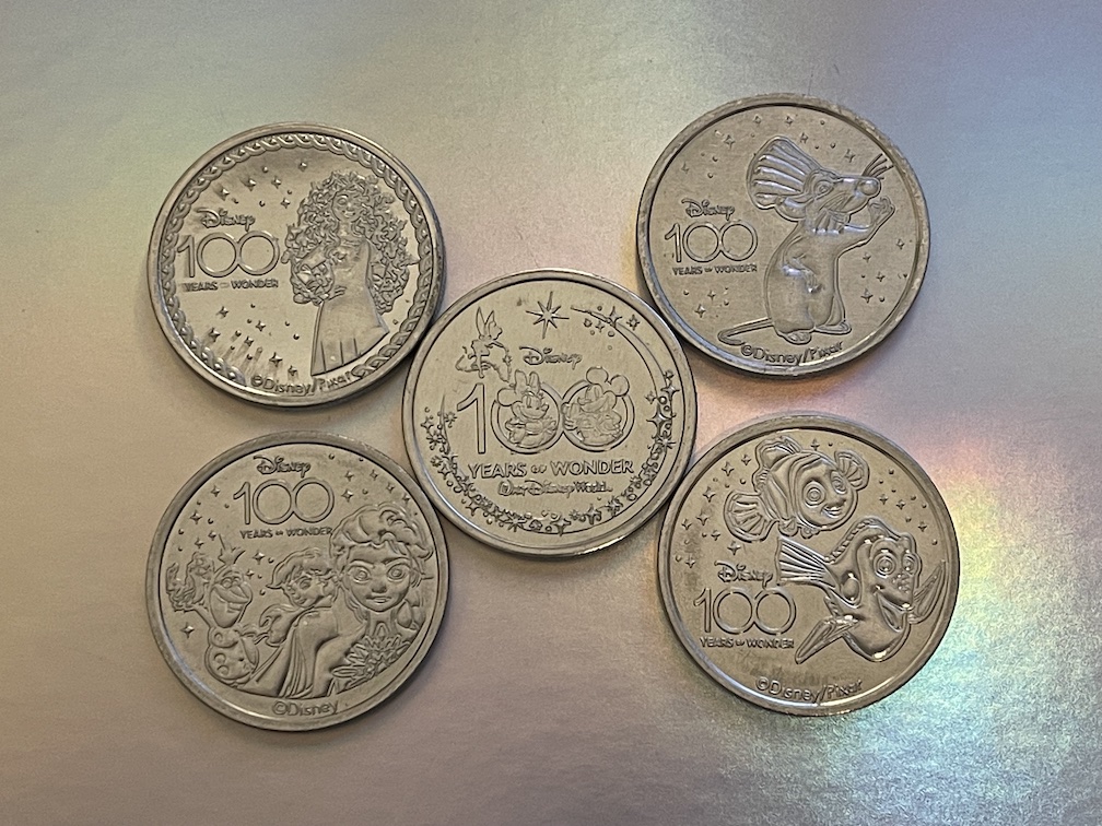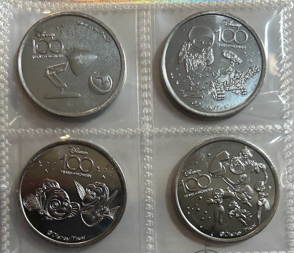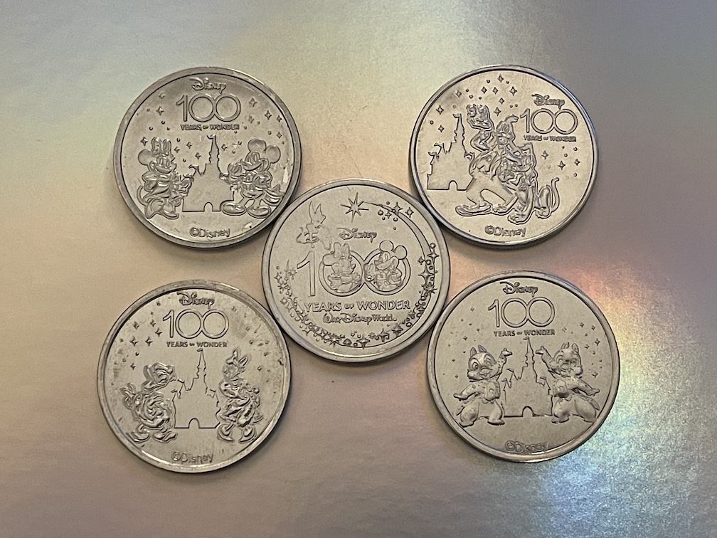 Starting January 27th, 2023 Disneyland out in California has begun celebrating the 100th Anniversary of the Walt Disney Company. There are plenty of new decorations, performances, special food and lots of souvenirs including a brand new set of Souvenir Medallions. I did want to mention that the price has gone up with this latest series, they now cost $6 for one coin, or $20 for the full set of four at each machine. Start saving now because this may be quite an expensive set to acquire.