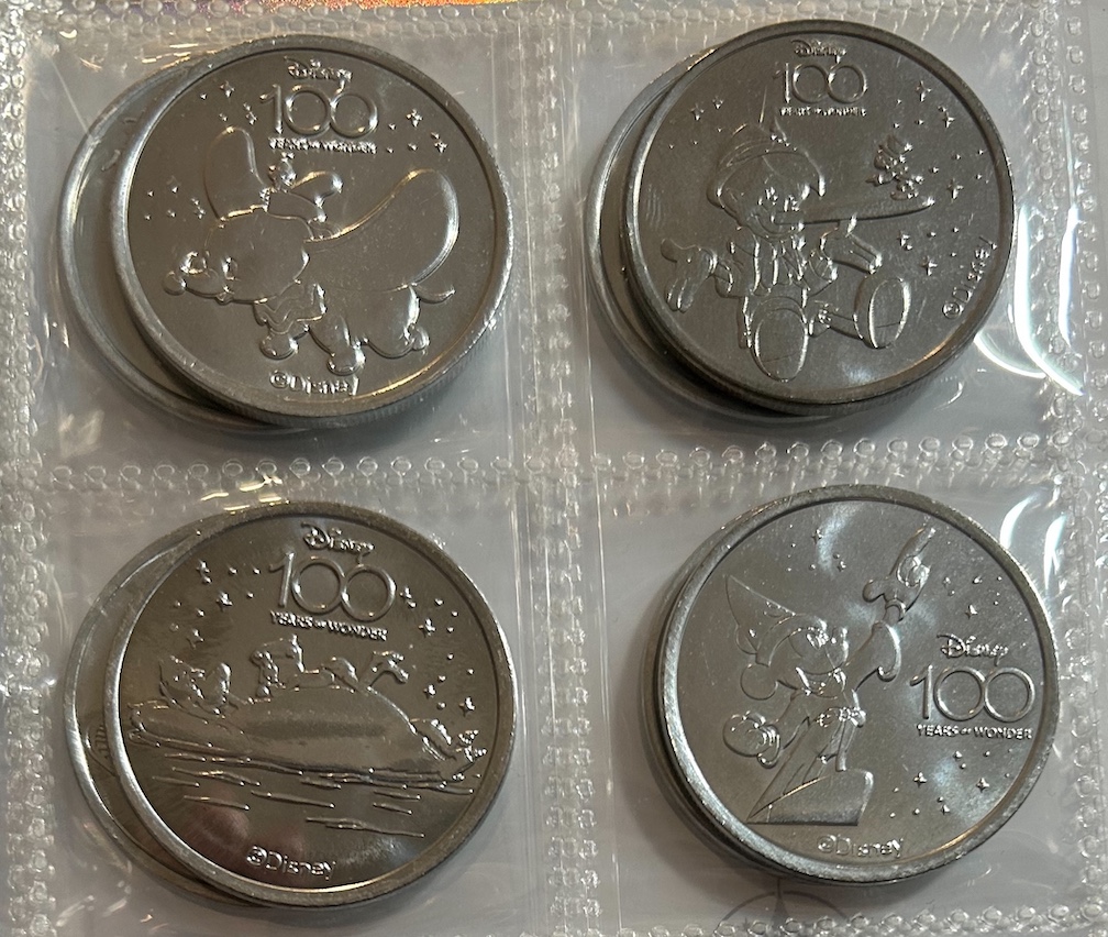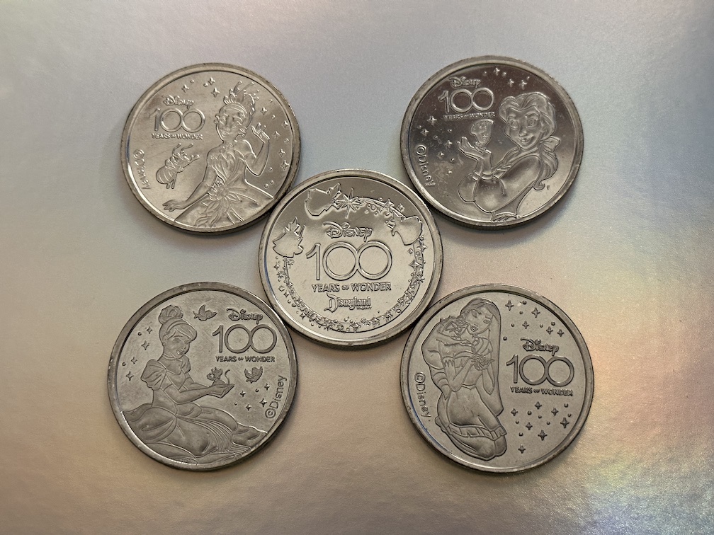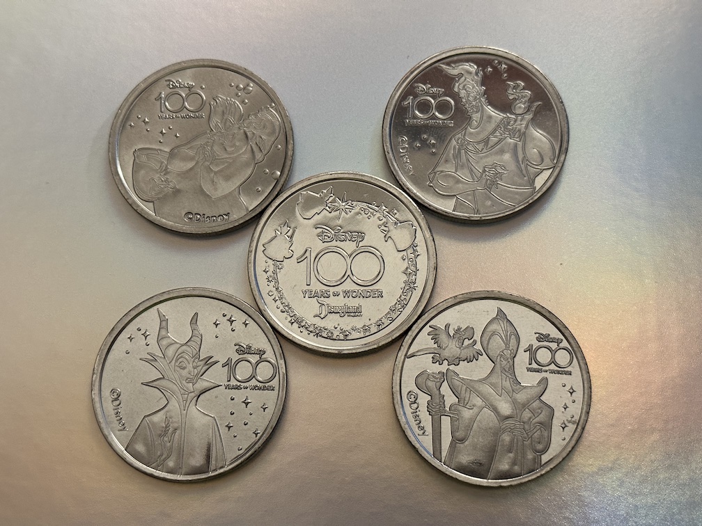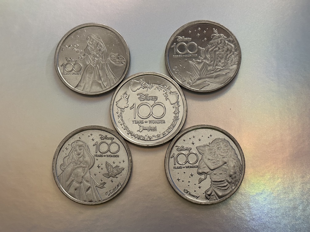 First I just want to put a big disclaimer here that this post will contain the collectible medallions that are available in Disneyland out in California. These are not currently available in Florida. For all Walt Disney World 100th Anniversary Medallions visit this separate post here. I do not personally have access to Disneyland so this information is being supplied by friends and fellow collectors, and I will try to keep it all organized here for everyone’s reference. Be sure to also check out the ParkPennies.com website for more detailed information on these Disneyland Coins and more.