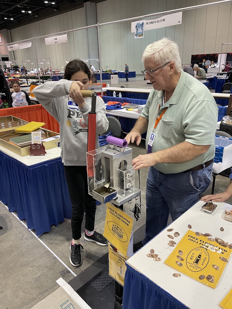 The booth also does have a coin press machine loaded with the special FUN Show design and is available to anyone that wants to press their pocket change or a special coin instead of the pennies on the table. Les was so wonderful to help my daughter press her copper penny.
