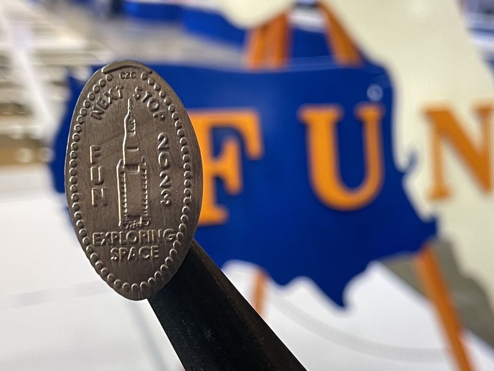 Here is a closer look at the FUN 2023 elongated coin design. This years show theme was Exploring Space and Cindy created this really great design which seemed very popular to visitors at the show.