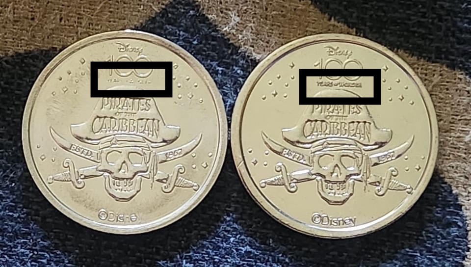 We have been notified of an error / variant version of the Steamboat Willie coin. As you can see in the above comparison pictures take a close look at the (C) Disney along the bottom. Similar to the Stitch Error Coin below, it seems like the coin with the missing (C) Disney along the bottom was part of the initial batch of coins released. Guests that have purchased this coin more recently seem to be getting the corrected coin. Be sure to check out your own collection, you may have one of the limited error versions of this coin.