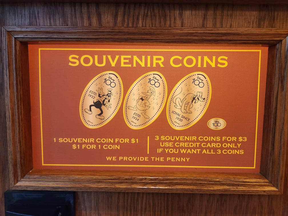 Just inside the entrance to the Kingswell Camera Store is a pressed penny machine with a new set of coin designs including original styles of Donald Duck from 1934, Pluto from 1930, and Goofy from 1932.