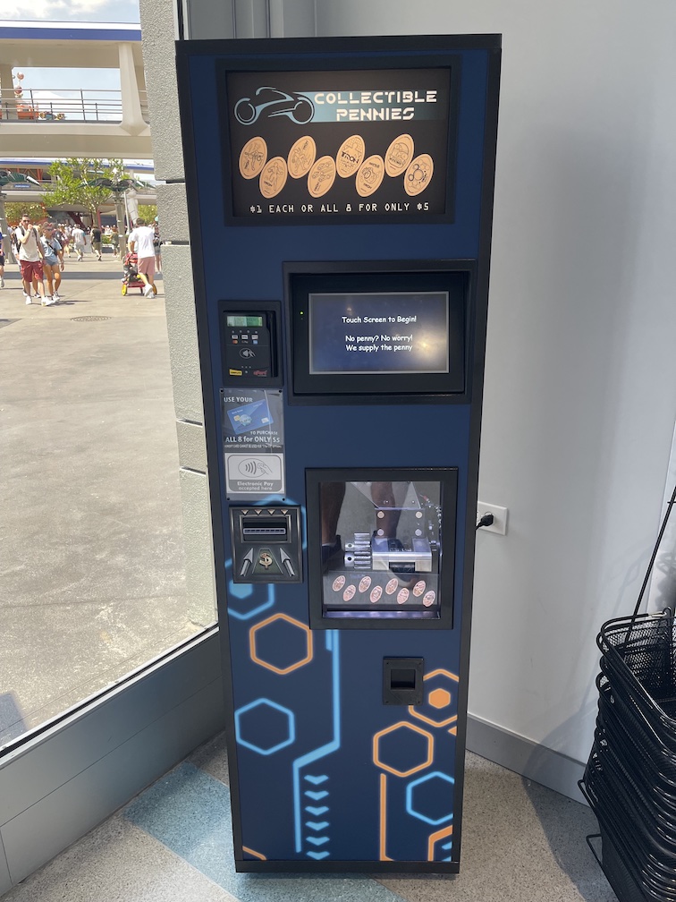 Sure enough I found the machine just outside the entrance doors. So you don’t need to go inside the theater or even watch the show if you are just looking to press a set of the new pennies.
