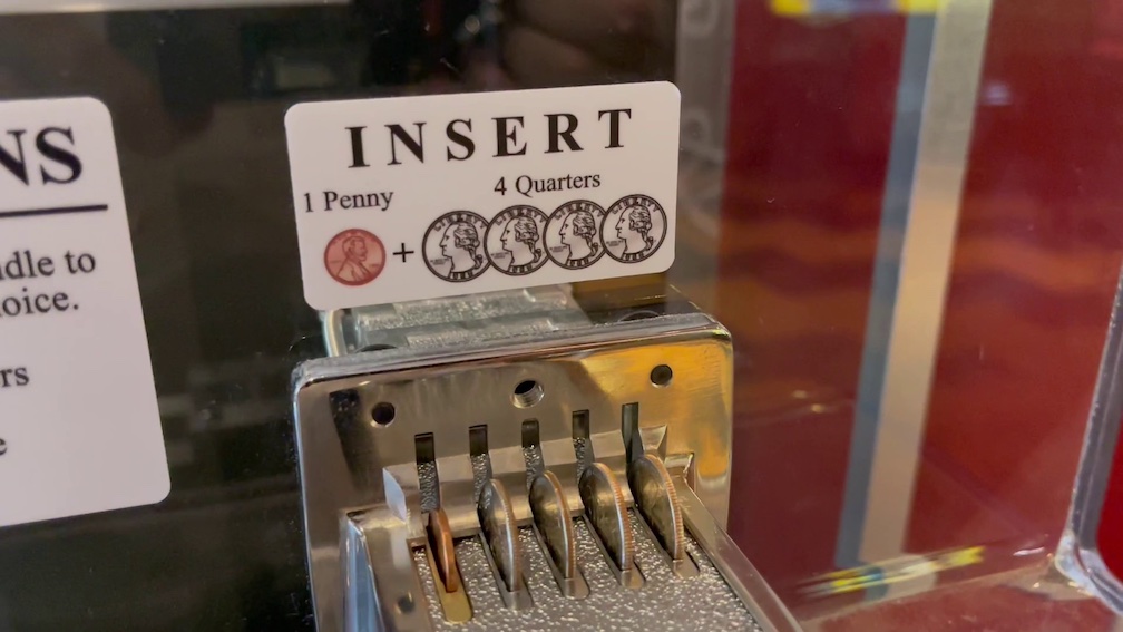 Just a few steps to the left and I found myself in front of the Pressed Penny Machine. Now if you look closely you may see a sticker near the $1.00 price tag that says “Out of Order”. I walked all the way up here and the penny machine was out of order. I did try it anyways but just confirmed it was not operational.