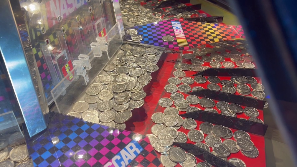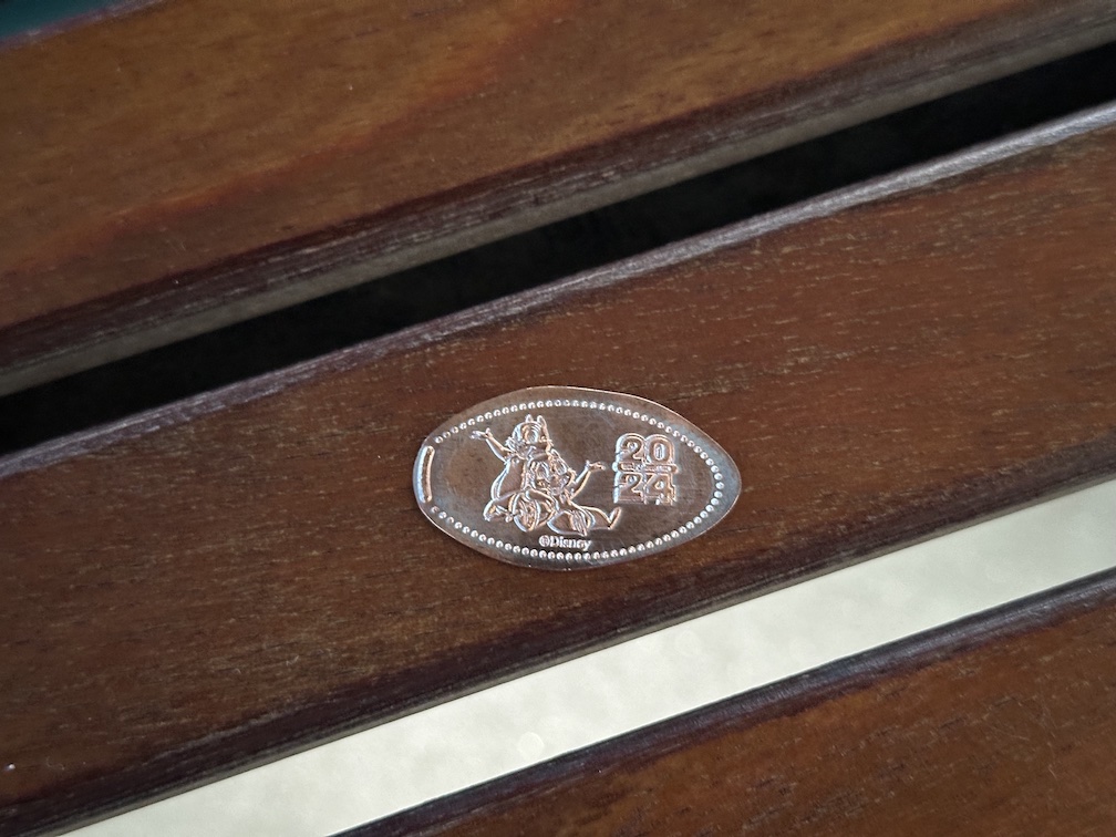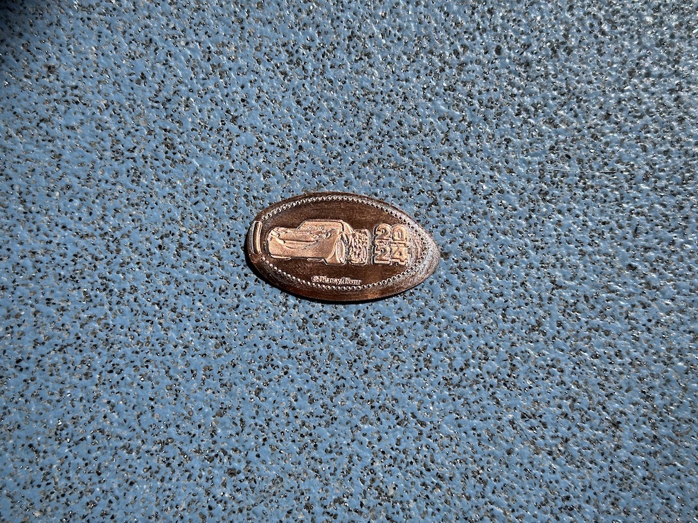 This was nice clear acrylic cabinet, with a large marquee on the top with the coin designs available. In the middle of the machine on the right side there was even a manual hold punch that you could use to punch a hole through your penny to turn it into a necklace or bracelet which I don’t think I’ve seen before.
