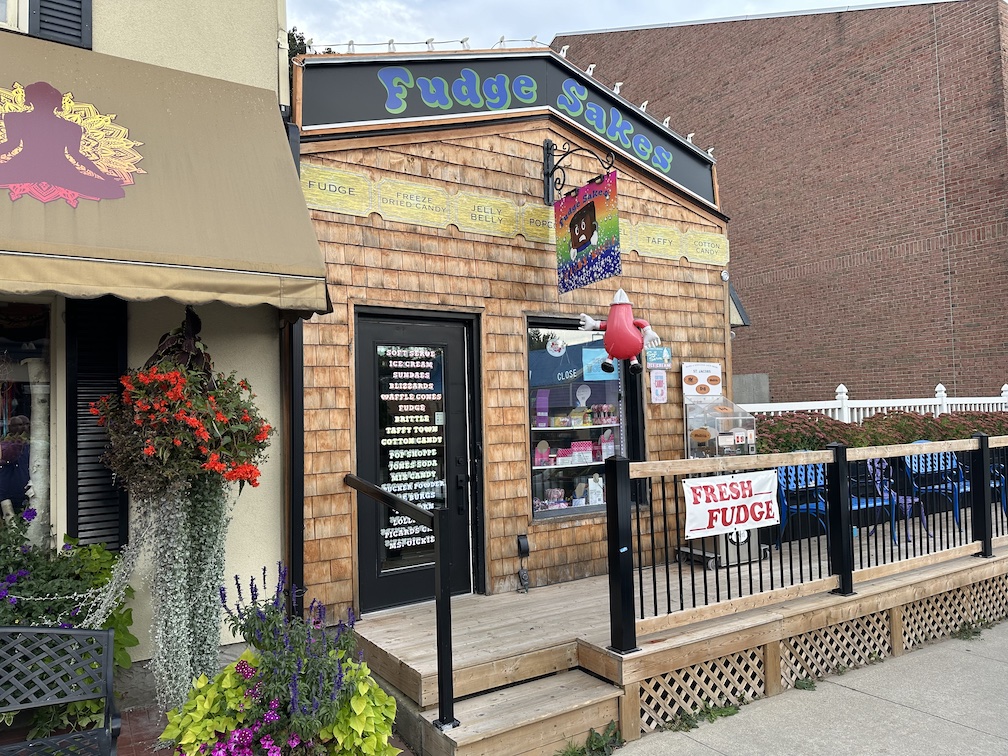 As I pulled off the highway towards and into the village center I found my first stop a place called Fudge Sakes. It was a cute little candy and ice cream shop. Unfortunately I was here so early in the morning that they were not yet open for business. Thankfully for me however the penny machine was located out front on the deck allowing use at any time of day.