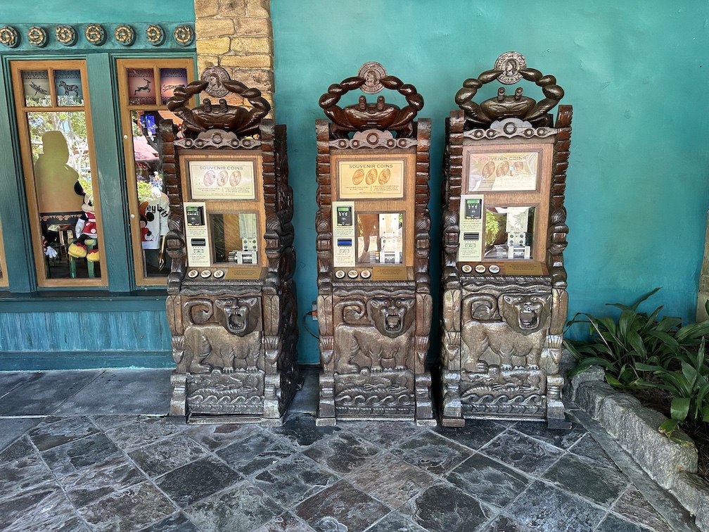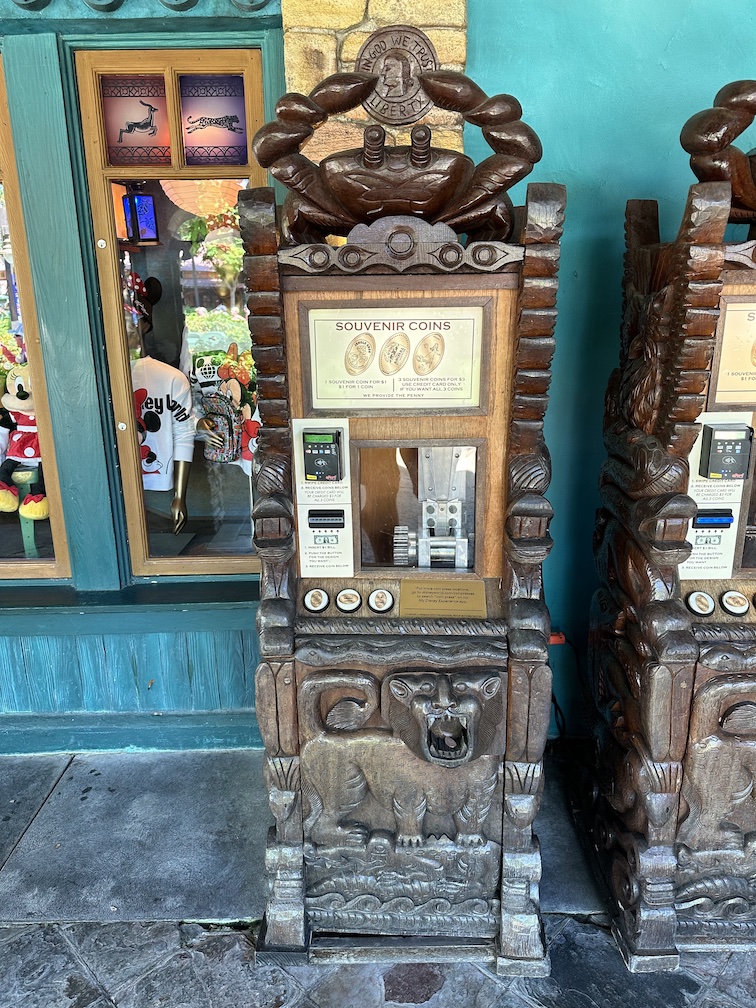 The machine cabinet is a pretty standard design with a wood grain exterior. It does match its look to the nearby pressed penny machine. Since this store is almost like a welcome center, I would have loved to see a vinyl wrap with images from all the different parks or even just covered in Disney characters. Something to help make it stand out a bit more, this is a pretty plain looking machine.