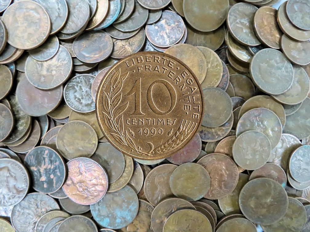 All of the designs are pressed on French 10 centime coins which are the approximate size and color of a U.S. cent. Due to the use of real French coins, only a very limited number of these sets were made.