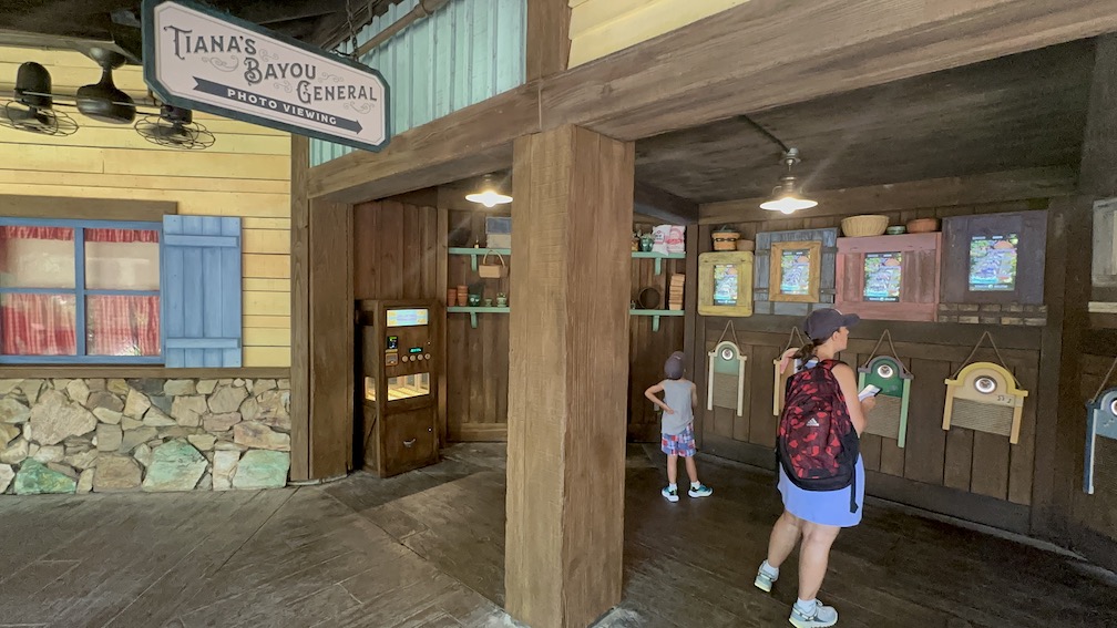 After getting off the ride you will eventually come to the Photo Viewing area with a bunch of monitors on the wall where you can see your on-ride photo. Tucked away in the corner is the Medallion machine.