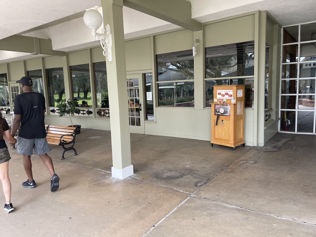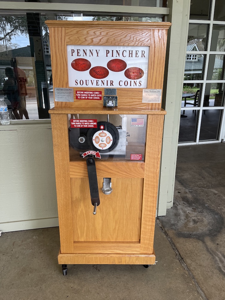 Plus if you head towards the back of this little covered pavilion you will find a pressed penny machine.