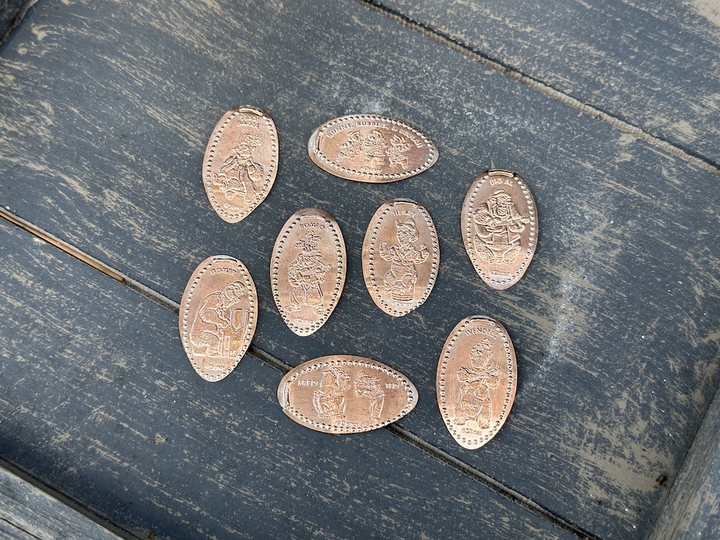 The penny designs available at this location however I can happily report pressed pretty well for the most part. The Raccoon design rolled a bit short, while the others were about as perfect as we could ask for with this type of machine. Each design includes the State Park name which I love, and the animal images are fairly generic. I’m sure these are creatures you “could” meet within the park, on our visit however we didn’t see any of them. Mostly just some frogs, and plenty of birds up in the trees.