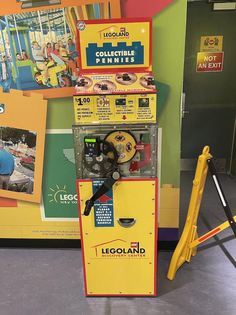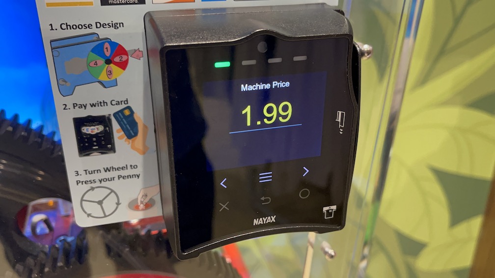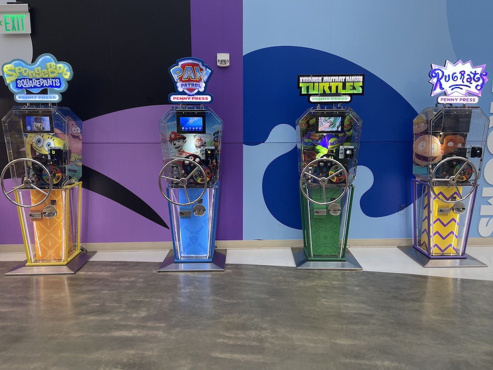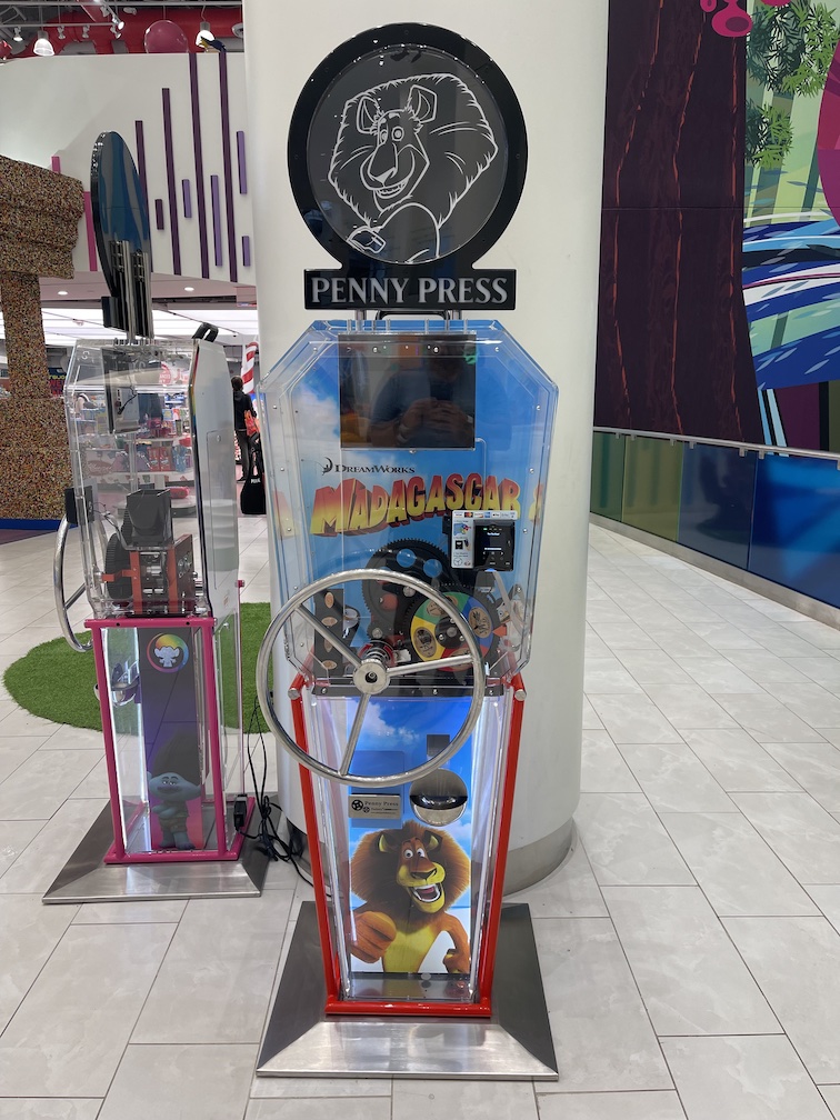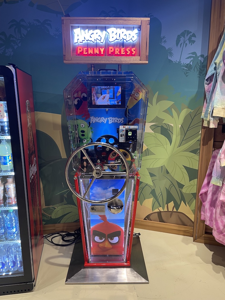 At first glance these machines look really cool, plenty of color, neon lights and some fun looking penny designs. However as I mentioned in my post about the Nickelodeon Theme Park these machines were a nightmare to use. Each design cost $1.99, the machine does supply the penny (whoopee!) but does not accept cash. It’s credit / debit card only and after you swipe your card 4-5 times that card is then locked and cannot be used again at any of these machines. There is nothing wrong with your card, it’s apparently just a security feature they have on their credit card system. As you can imagine there were 16 pennies among these machines, 16 more at the Nickelodeon theme park, and one more at the Angry Birds mini-golf store was almost impossible.