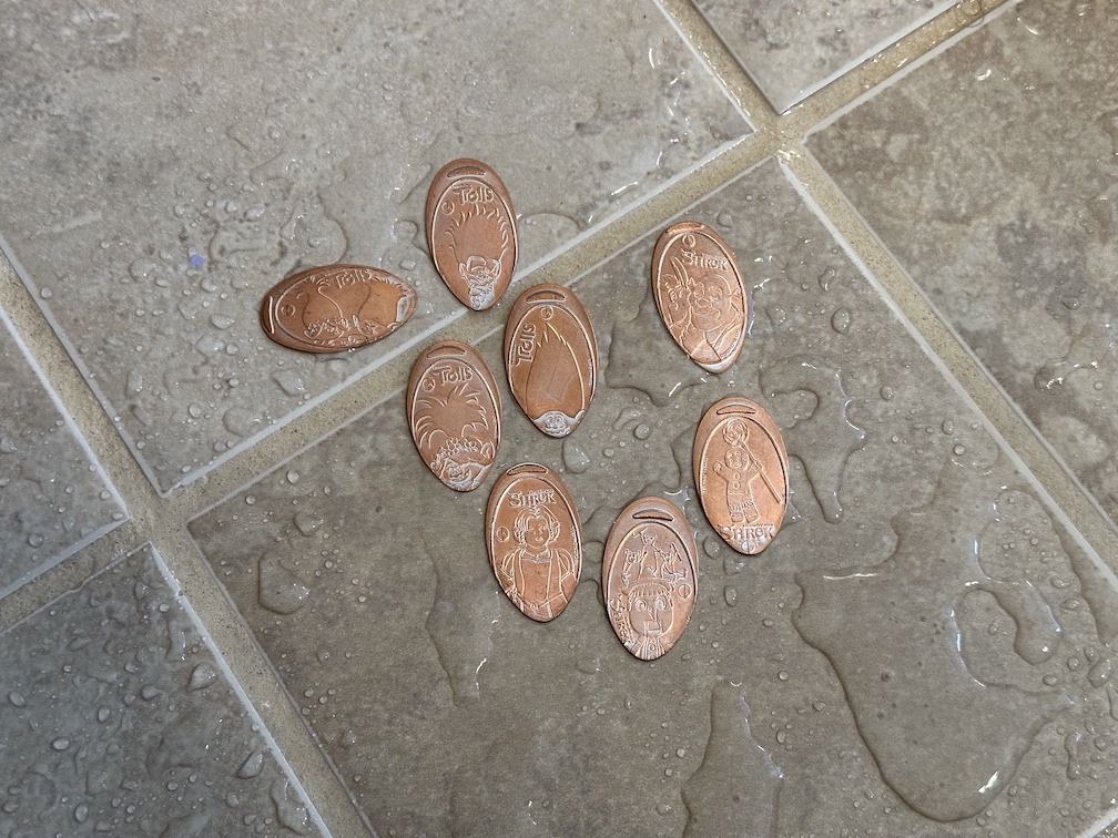 You may also notice that in the above photo of the pennies I was only able to collect eight of them from these four machines. Only the Trolls and Shrek machines were working and even then many of the designs were rolling short which honestly is unacceptable at the $1.99 price point these should come out better. Since being home I’ve tried reaching out to the water park and theme park to see if there was someway I could get the designs from the two machines that were not working and so far no one has been able to help. I’ve also inquired with some friends and family to help the next time they visit so fingers crossed sometime soon I may be able to get those last two sets.