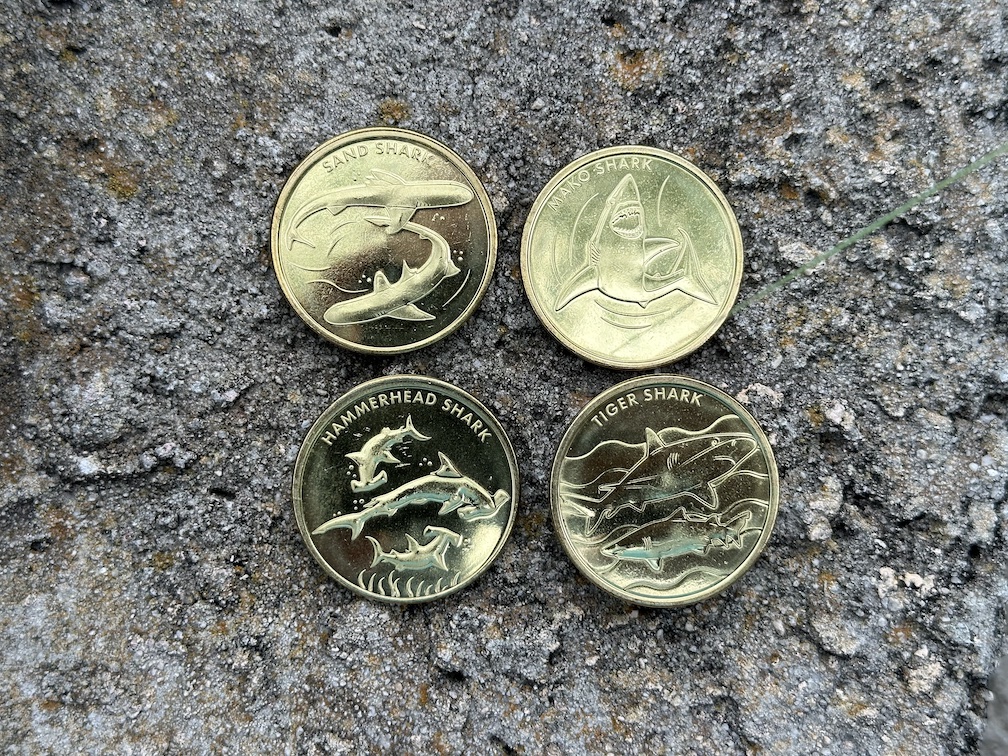 The set of coins includes designs featuring different types of sharks. Sand Shark, Mako Shark, Hammerhead and Tiger Shark. These designs are nice but not really that detailed in my opinion.
