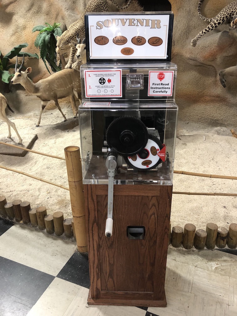 As we took our time wondering from room to room I did come across a penny press machine infant of a large taxidermy diorama that you can see in the above photo behind the machine. Not sure what that had to do with shells, but I was more focused on the penny machine.