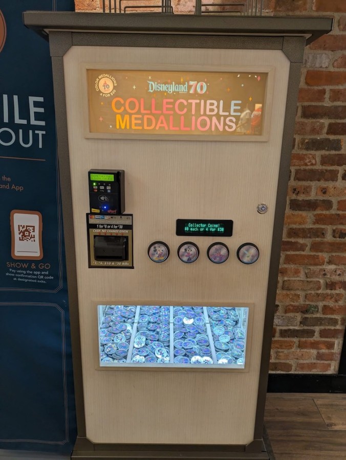The first machine can be found at the Main Street Opera House as you exit the attraction. This is an 8-design machine featuring the different Lands within Disneyland, including Tomorrowland, Adventureland, Fantasyland, Frontierland, New Orleans Square, Bayou Country, Toontown, and Galaxy’s Edge.
